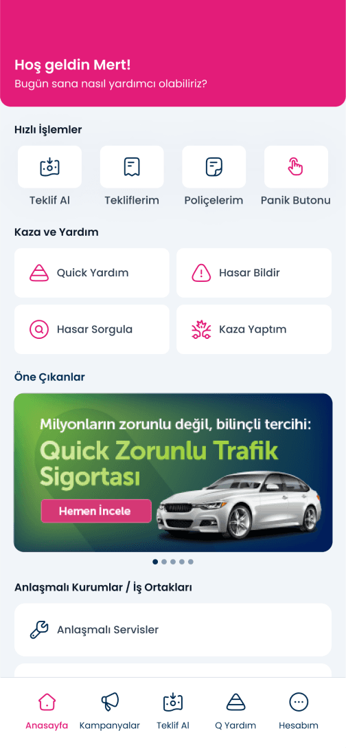 Zorunlu Trafik Sigortası, Kasko, Konut, Dask, Seyahat Sağlık, Ferdi Kaza, Ekstrem Sporlar sigortaları ve daha fazlası cebinde.Kaza Anında İhtiyacınız Olan Herşey